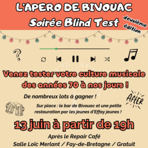 Le principe ? Dominique vous propose d’apprendre à créer des accessoires zéro déchet (éponges ou essuie-tout lavable, couvre-plat, sac à vrac, tote bag, lingette démaquillante…) pour remplacer le jetable.Tarifs : 5 € pour les adhérents / 8 € pour les non-adhérents Pour participer, prendre contact avec Dominique au 06 67 86 73 73 ou inscrivez-vous… Lire la suite »Blind Test – 2ème édition !
