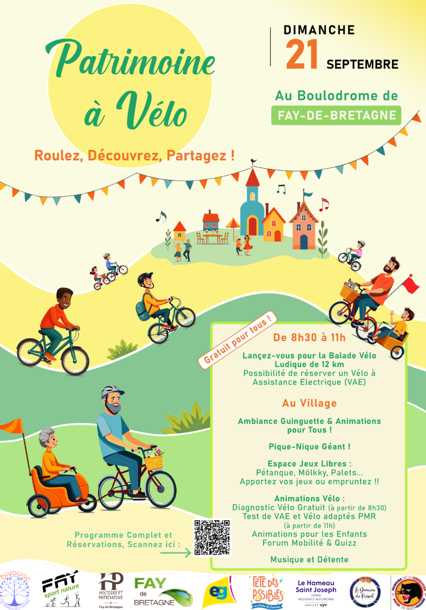 Bivouac participe à l’organisation du Rallye Vélo et patrimoine, avec plusieurs partenaires de Fay de Bretagne. Vous pourrez découvrir des lieux de la commune, grâce à des énigmes tout au long de différents parcours à vélo, famille, enfants, sportifs.